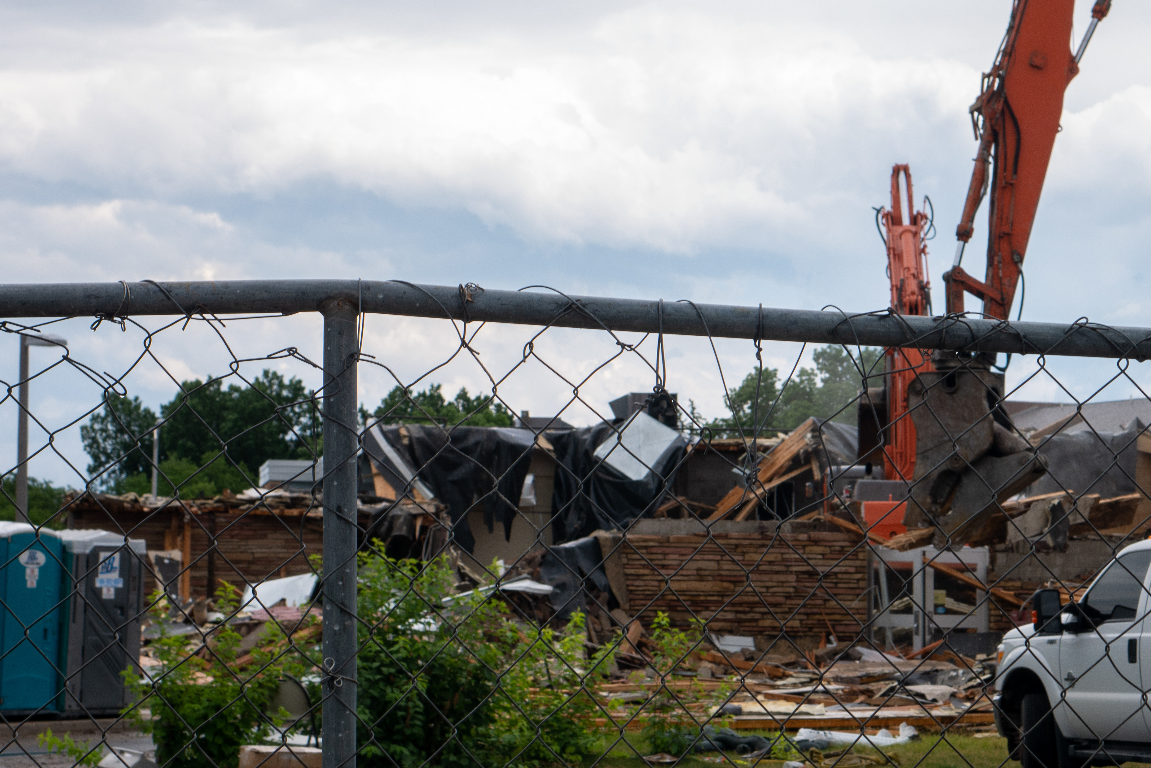 Plans to demolish Aylesworth Hall were being made in the late 90s when major renovations and updates to the dormitory were largely stopped, being unnecessary as the building was to ultimately be destroyed. Twenty years later in 2019, Aylesworth Hall was finally torn down. During those twenty years, Aylesworth Hall slowly degraded into disrepair. Aylesworth Hall was closed in January of 2019 and an extensive asbestos abatement began. The abatement lasted far beyond schedule and pushed the principle demolition into the summer. The first external signs of demolition were the removal of the windows on the four stairwells on the end of each wing. This began the process of removing all the window casings and sage green panels from the exterior, as all had asbestos lining and needed to be carefully uninstalled by hand for proper disposal. This process began in April and lasted until the very beginning of June. The main demolition began on July 8th, with the demolition of almost the entirety of the core. The wings were then demolished one by one, starting with the northern wings and then the southern wings. As the wings were being torn down, the ruble was sorted, organizing the rebar, metal, concrete, and brick which were all taken away separately to be reused. Once the wings were torn down, the only standing piece of the dormitory was the back portion of the core, the original kitchen and delivery area. The back wall of Aylesworth Hall was knocked down August 7th, completing the main demolition. In the following weeks, the remaining pieces of foundation were removed and the entire lot smoothed over with fill dirt and left vacant. In early Spring 2020, work began on the lot, preparing for the construction of a new academic village.